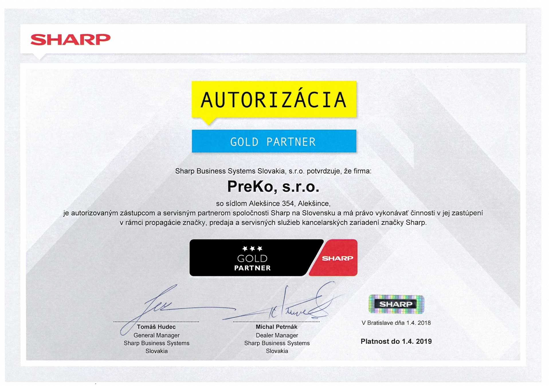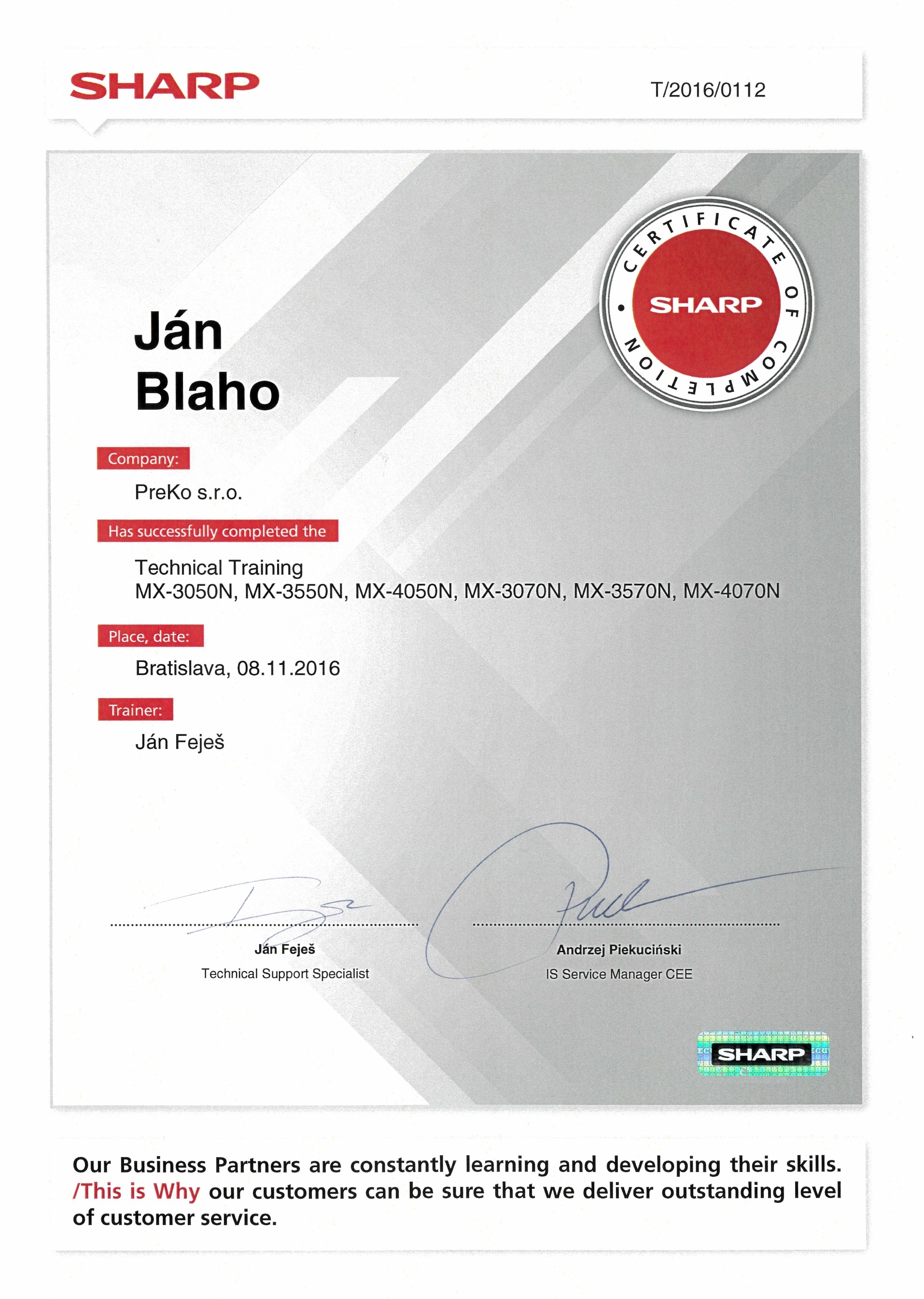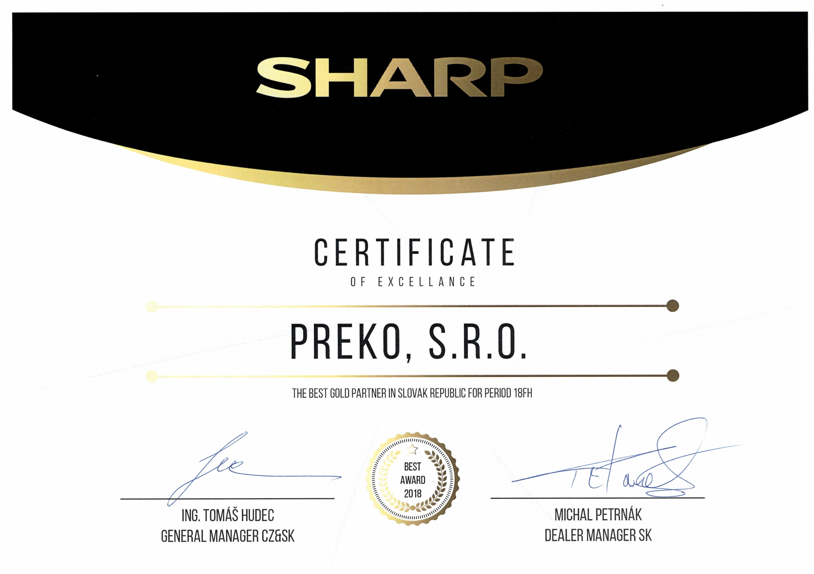 CERTIFIKÁTY UDELENÉ NAŠEJ SPOLOČNOSTI